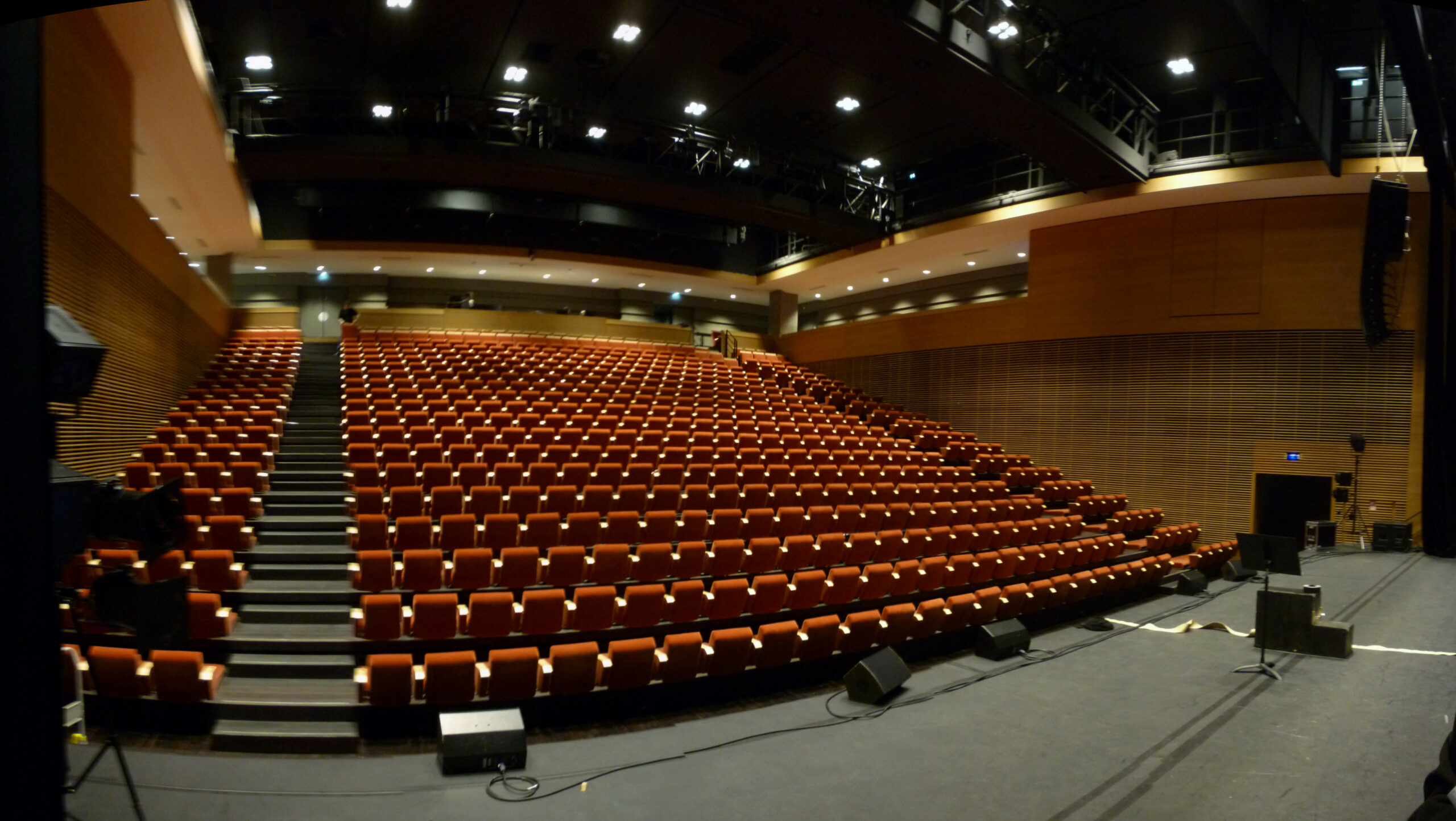 The integration of acoustic performance in the performance hall has led us to offer tailor-made solutions for the ceiling, the walls and the reflective mobile panels.
